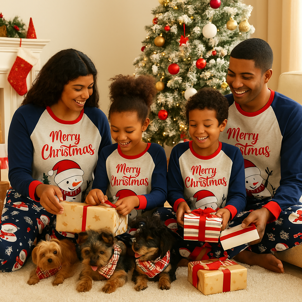 Nuestra pijama familiar navideña está confeccionada con tejido suave al tacto y calce relajado para moverse, jugar y descansar sin picazón. El clásico diseño a cuadros luce increíble en cámara y mantiene el abrigo justo para casa.